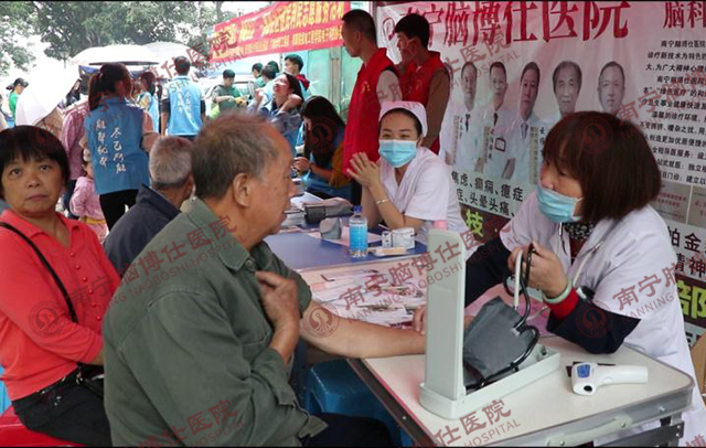 为提高居民对精神心理疾病的认知度和防控能力,我院义诊团队来到了南宁鲁班路6号(肉联厂职工小区),为居民免费查血糖、血压,提供失眠、抑郁、焦虑等精神心理疾病的咨询。