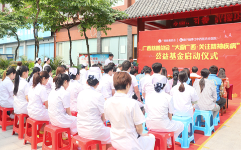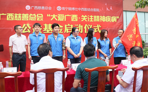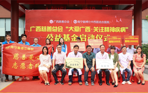 2019年4月28日,广西慈善总会“大爱广西 关注精神疾病”公益基金启动仪式在南宁拉开帷幕。广西慈善总会秘书长梁业勇、项目办主任莫洪、办公室主任蒙晓红,南宁脑博仕医院院长闭仲安、名誉院长王永芳、人民中社区主任蒙秀凤等领导出席基金启动仪式。