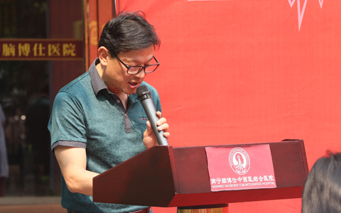 人民中社区主任蒙秀凤,做为首批接受公益援助家属代表上台发言,蒙主任非常感谢南宁脑博仕医院的善举,给二十几年不出门的精神分裂症患者吴金弟提供免费医疗救助,相信有了医院和大家的帮助,小吴一定会恢复健康,回归社会。也希望随着广西慈善总会“大爱广西 关注精神疾病”公益基金的启动,能造福更多的像小吴一样的困难精神、神经疾病患者。