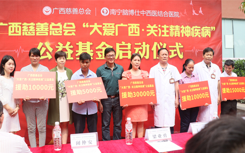 据了解,广西慈善总会“大爱广西 关注精神疾病”公益基金的成立,为全区精神疾病患者筑下爱心捐资实体的基石。基金成立后将援助全区范围内建档立卡贫困户、五保户、低保户以及其他贫困家庭的精神、神经疾病患者家属。