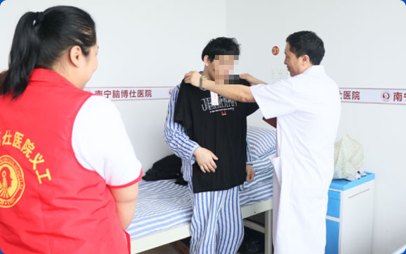 小吴是吴大爷夫妇在30多年前抱养的儿子,虽然备受吴大爷夫妇疼爱,但小吴从小似乎不喜欢跟人交流。 小吴上小学时被人欺负了以后,因为担心再被人欺负,就不肯去上学了,二十多年来,他一直把自己关在家里面,不愿跟外面的人沟通。常年不愿出门的他,衣食住行都是靠吴大爷夫妇的照顾,两年前,小吴的母亲去世了,紧接着,父亲吴大爷也因为脑梗病倒了。如今32岁的小吴无人照顾,不愿外出的他只能依靠社区给他送菜维持生活。 通过栏目组了 解到小吴情况后,南宁脑博仕医院爱心志愿者队决定救助帮扶这位二十多年都没出过门的青年。 我院志愿者与记者来到小吴家 我院代表给小吴送上慰问礼品 我院志愿者带领小吴探望住养老院的父亲 我院医生为小吴做简单的检查 我院为小吴提供全免费住院治疗救助 小吴签字正式在我院接受免费治疗 小吴在住院中,首都医科大学附属复兴医院肖刚教授、北京昌平区中西医结合医院宋长惠教授,南宁脑博仕医院名誉院长王永芳,以及邹德棠主任、马凤主任,心理咨询师谢正中老师等联合为吴金弟进行会诊。根据症状表现与临床检测报告,初步诊断他患有精神分裂症,并为他制定了一系列个性化治疗方案。 ① 脑部检测 脑分区功能检测仪扫描脑部组织,为下一步治疗提供依据 ② 物理仪器治疗 经颅磁刺激治疗仪物理治疗结合中西医平衡调理 ③ 专业心理辅导 心理辅导干预,缓解心理压力,减轻心理危机 ④ 工娱活动 定时参加工娱活动,娱乐身心,逐渐恢复社会功能 小吴第一天入住我院,工作人员送来新衣裳 南宁脑博仕医院全体员工为小吴献爱心捐款 天气热了,医院志愿者给小吴送来了清凉 为了让小吴尽快恢复社会功能,回归社会生活,南宁脑博仕医院爱心志愿者带领小吴先后到人民公园、广西自然博物馆、海底世界游玩,让其接触外面的世界和社会。 人民公园祭奠革命烈士 广西自然博物馆参观 南宁海底世界游玩 经过3个月的住院治疗,小吴在医护人员的精心照顾下,现在能洗衣服、扫地、擦玻璃,生活自理能力大大改善,而且能够积极的参加院内的工娱活动。 绘画 打乒乓球 叠被子 做体操 南宁脑博仕医院住院部主任 通过物理治疗改善脑神经递质,配合指导恢复社会功能,小吴的情况得到了有效的改善,经过院内专家的联合评估已经达到了临床治愈效果。 关注精神疾病患者,关爱社会贫弱群体,为政府分忧是所有公益慈善事业机构,以及企事业单位、社会人士共同的社会责任。 南宁脑博仕医院作为一家精神心理疾病专科医院,勇于承担社会责任,携手广西慈善总会成立”大爱广西,关注精神疾病“公益慈善基金。 援助对象各类精神、神经疾病患者,贫困家庭者等 1 说明家庭情况 2 填写申请单 3 拿到救助金