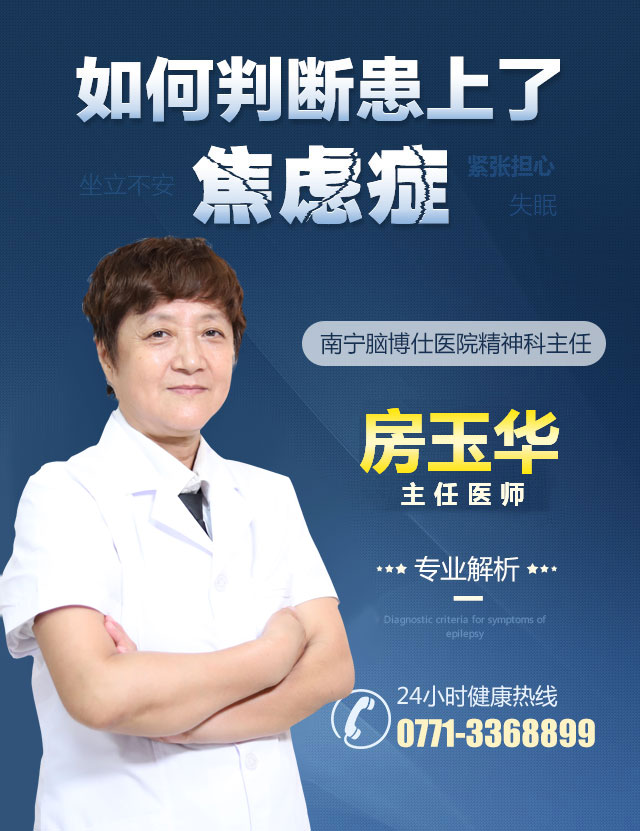 南宁脑博仕医院精神科主任房玉华主任:焦虑症状最严重的时候,个体甚至会出 现自杀念头,还会出现连续头晕或者暂时失去记忆。因此及早识别焦虑症, 对于诊断、治疗、和改善预 后都具有重要意义。
